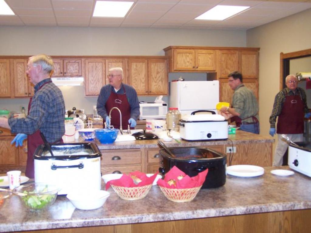 LLL men diligently working the kitchen