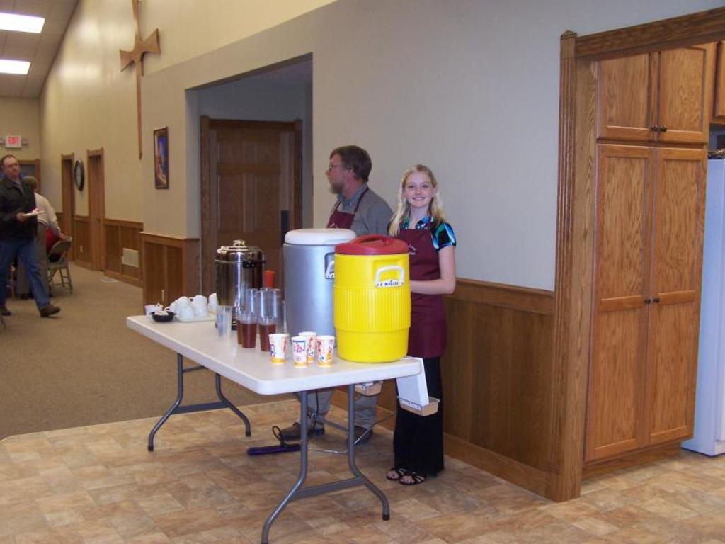Boyd and Ervin are busy serving up generous plates of spaghetti