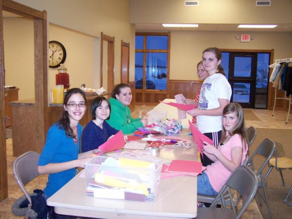 Girls working on Valentines for College Students