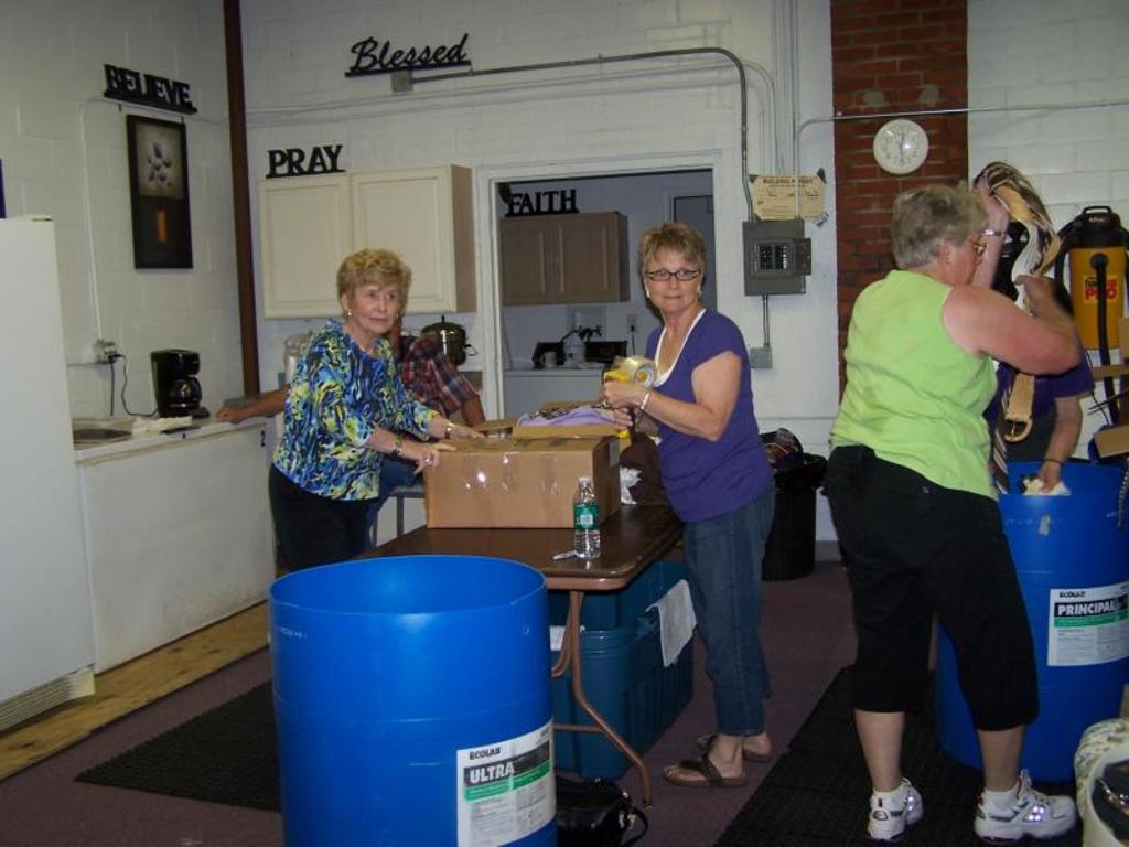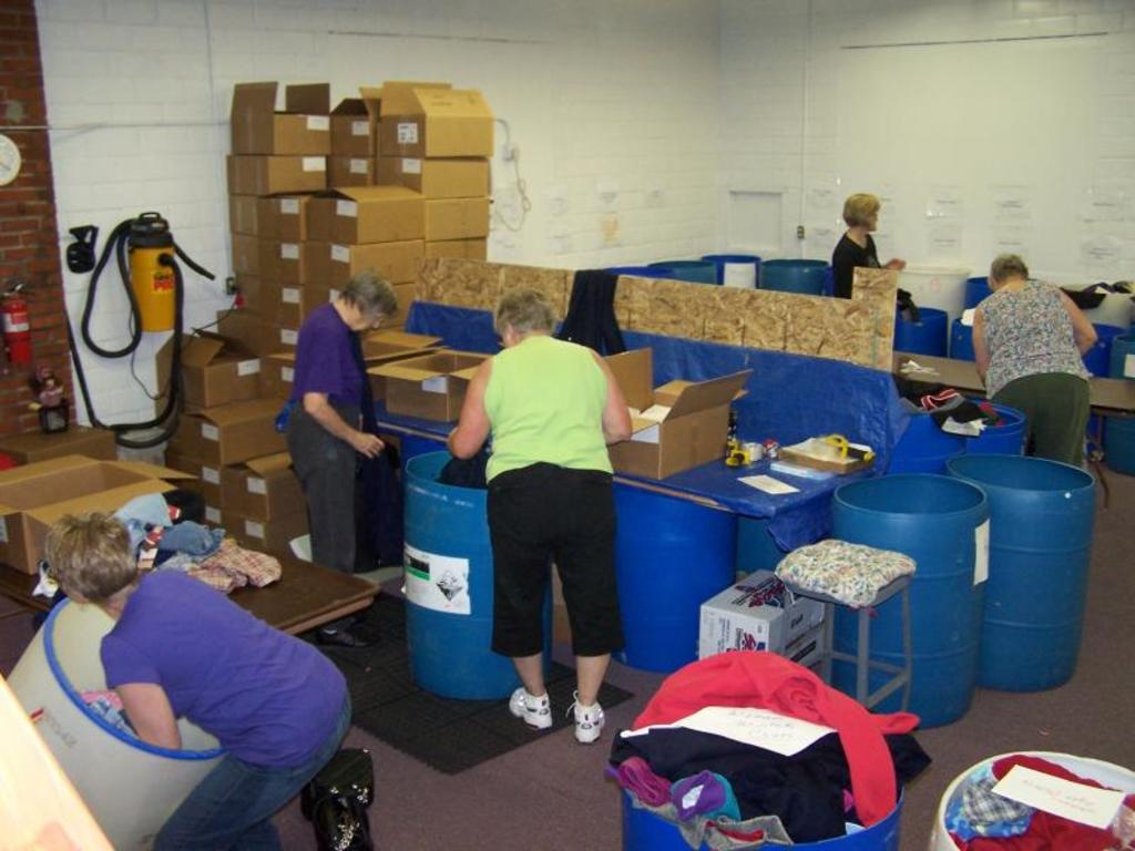 Gals busy sorting and boxing clothes