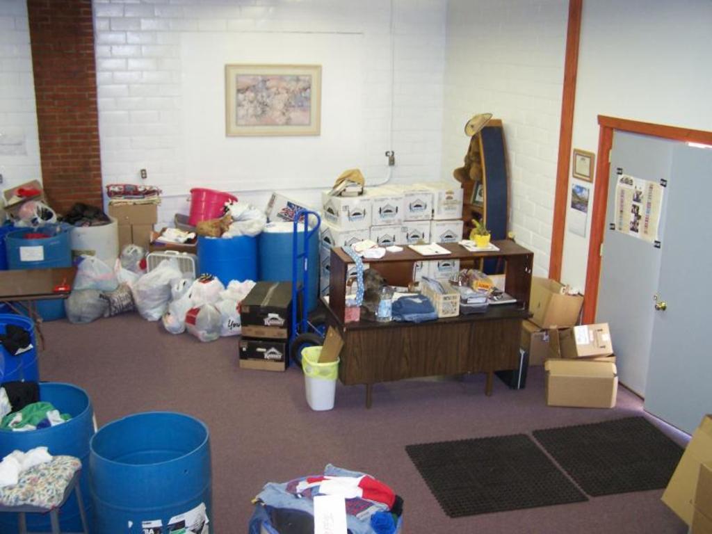 Office area and more clothes to go through behind the desk
