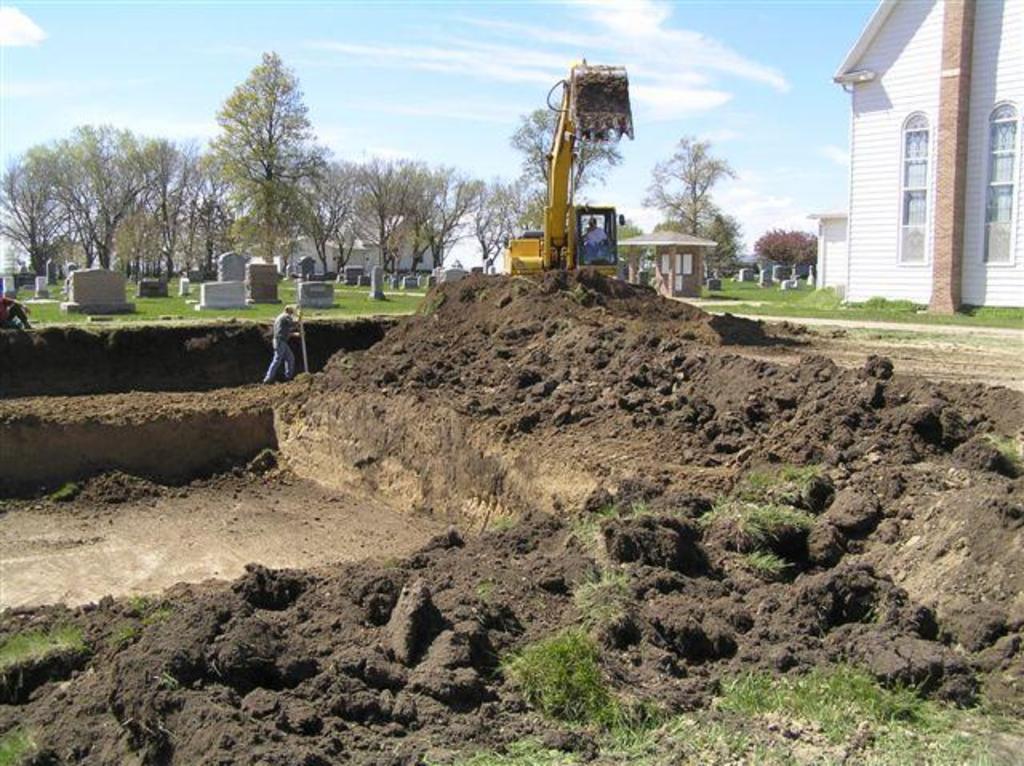 Brian Driewer digging, Cory Schulze w/shovel & Ed supervising